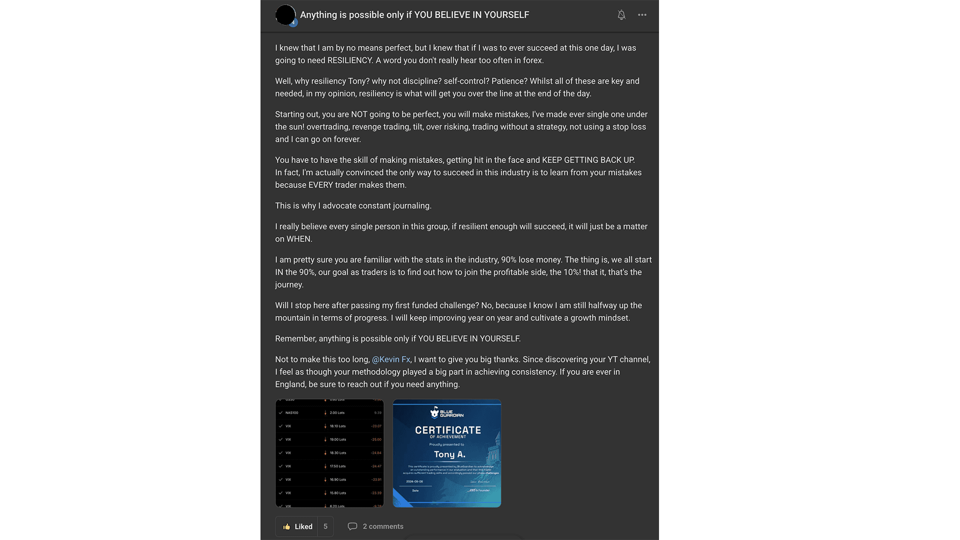 In the first few days, you go through the core sections of the Launchpad: market reality, psychology, risk, technical execution, and prop firm logic. Every lesson is built to be simple, practical, and directly usable – not theory.